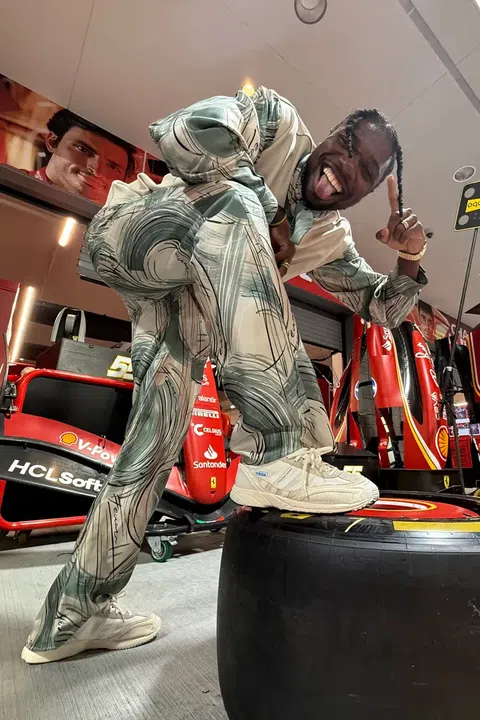 Olympic champion Noah Lyles turned heads at the F1 Las Vegas Grand Prix with bold footwear that blended vintage and modern styles.