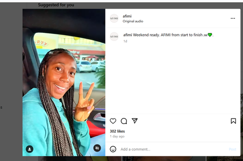 The caption from her brand read: “Weekend ready. AFIMI start to finish💚.”