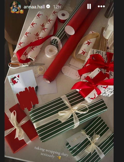 In another post, Hall displayed a stack of wrapping papers, proudly declaring her dedication to gift preparation.