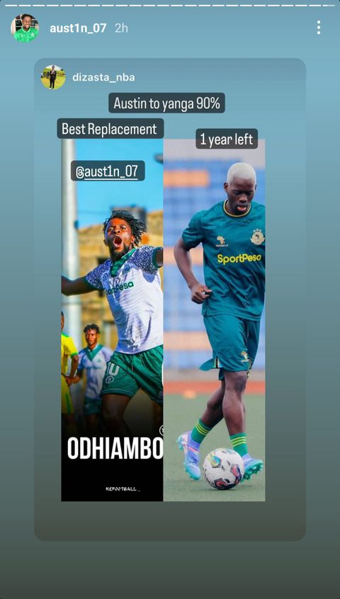 Gor Mahia midfielder Austine Odhiambo has sparked speculation about his future at the club after resharing a fan post linking him to Tanzanian Premier League giants, Young Africans (Yanga SC).