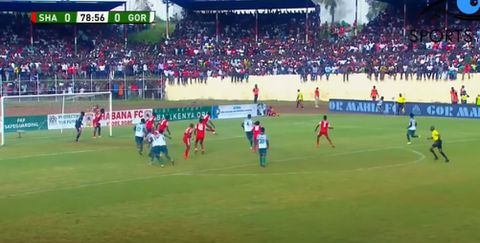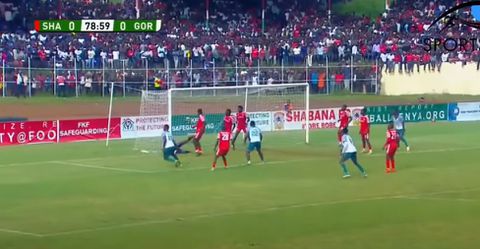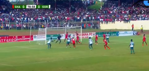 However, Shabana’s Marvin Ochieng (number 40) forgets he is supposed to keep tabs on Owino, who is allowed to make a run to the back post