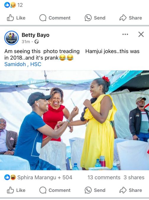 “I am seeing this photo trending. Kwani hamjui jokes? This was in 2018, and it was a prank,” Betty wrote.