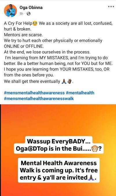 In a candid social media post shared on Friday, June 20, 2025, Obinna described a society where people are lost, confused, hurt, and broken, painting a picture of a society desperately in need of healing, guidance, and self-reflection.