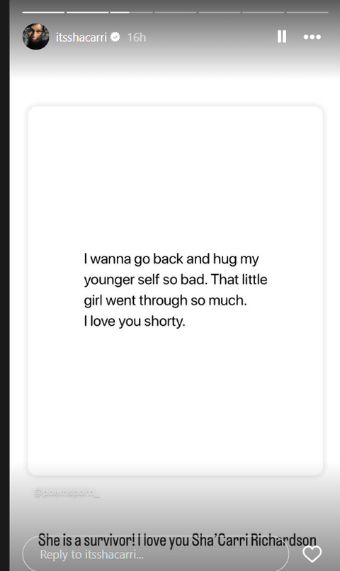 She added, “She is a survivor! I love you Sha’Carri Richardson,” expressing both pride and deep gratitude for her personal growth.