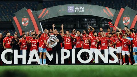 Al Ahly celebrate 2024-25 Premier League win.