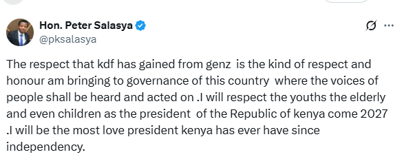 In a statement on June 27, 2025, Salasya said that his presidency will listen to the voices of Kenyans.