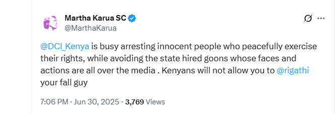 Karua’s statement has added to mounting pressure on the DCI, which on the afternoon of Monday, June 30, 2025, clarified that Gachagua had not been summoned but left the door open for possible legal action, should investigations link him to any criminal involvement.