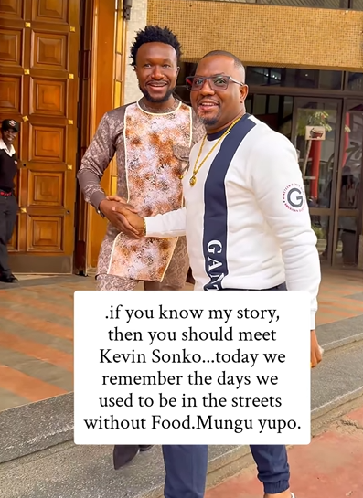 “If you know my story, then you should meet Kevin Sonko. Today, we remember the days we used to be in the streets without food. Mungu yupo. To God be the glory,” he wrote.