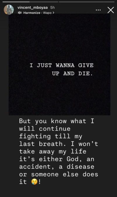 In the Instagram story shared on Wednesday, June 2, 2025, Mboya expressed that despite battling overwhelming thoughts, he does not intend to let those self-defeating emotions overpower him.