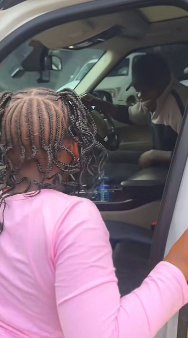 Obinna appeared visibly joyful as he engaged Talisha in conversation, speaking to her with warmth and energy while seated inside the luxurious vehicle.