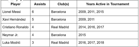 Top Assist Providers in FIFA Club World Cup History