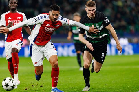 William Saliba, Viktor Gyokeres seen during UEFA Champions League game between teams of Sporting CP and Arsenal FC (Maciej Rogowski)