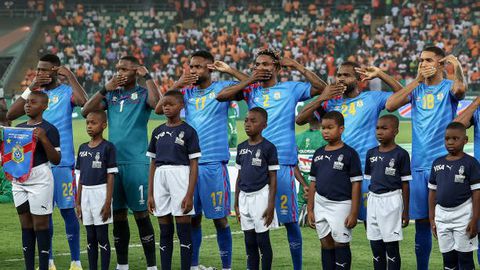 DR Congo players gesturing on the war in the Eastern part of the country|COURTESY