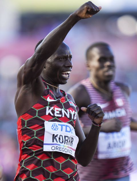 Emmanuel Kipkurui Korir of Kenya celebrates winning the men s 800m final at the World Athletics Championships Oregon22 in Eugene, Oregon, the United States, July 23, 2022.