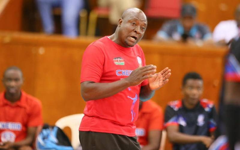 Chema Volleyball Club head coach Jeremiah Mukopi instructs his charges against Administration Police during their 2025/26 Kenya Volleyball Federation Men’s League at the Kasarani Indoor Arena on November 8, 2025. [File, Standard]
