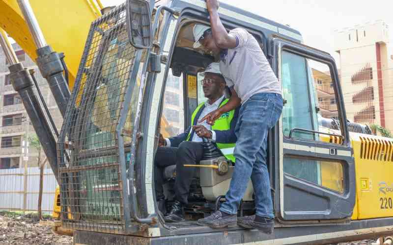 Eric Muli, CEO of MRE Real Estate, operating the excavator during the ground-breaking ceremony of Manyanja Mall in Eastlands, Nairobi. [James Wanzala, Standard]
