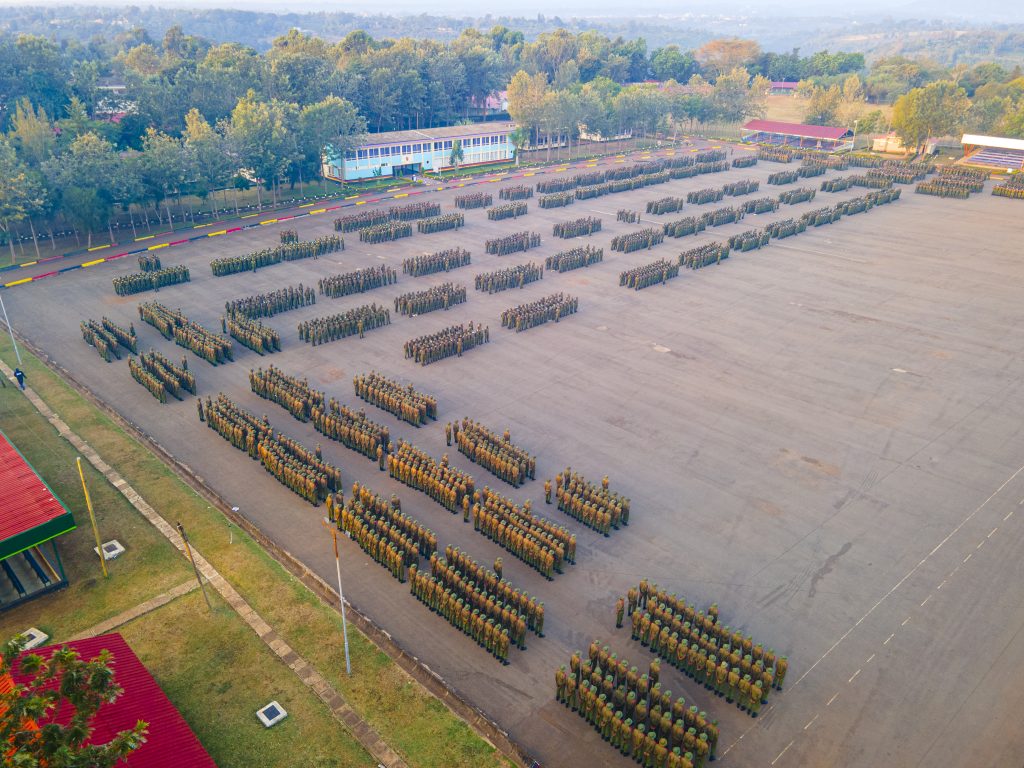 At Kiganjo, Munga oversees a rigorous program of drills, classroom lessons, and practical exercises designed to transform recruits into professional officers.