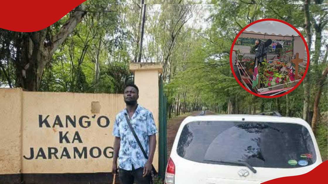 - In the video he shared, Omosh was at Raila’s grave, joining cleaners in taking care of it after heavy rain