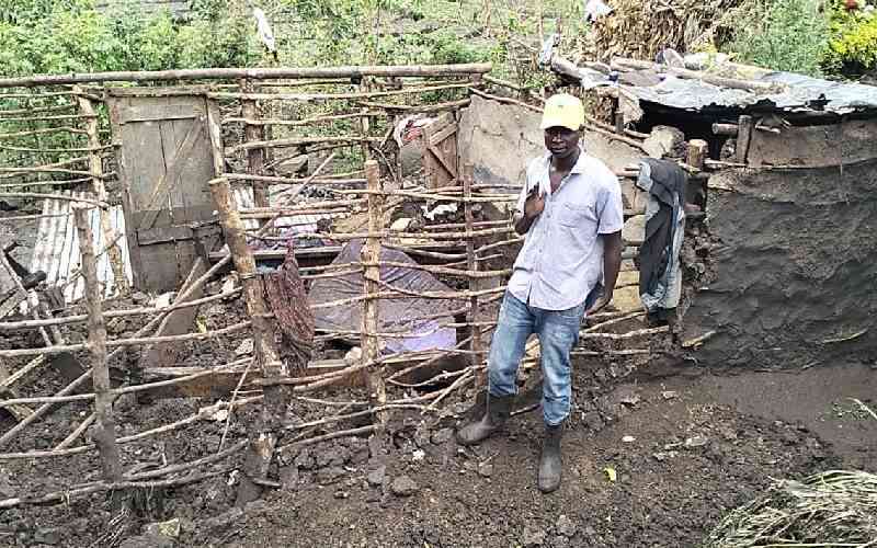 At least 50 families have been displaced by floods following heavy downpour in Mt Elgon, Bungom.The hard hit villages include Chesiywo, Kapkrong and Kimama at Chesikaki. [Jackline Inyanji, Standard]