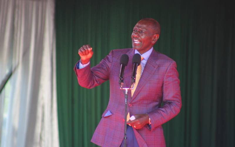 President William Ruto addresses Rarieda residents during the thanksgiving ceremony of Health PS Ouma Oluga in Siaya County, on March 8, 2026. [Rodgers Otiso, Standard]